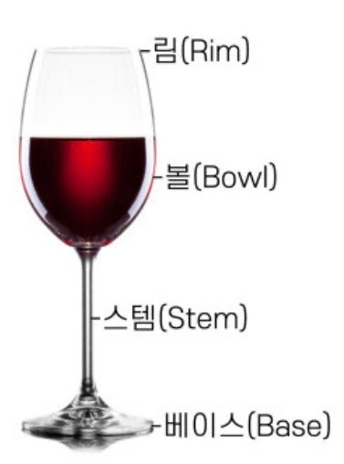 - 입구 : 와인이 입안에 들어갈 때 어느 부위로 닿을지 결정하는 중요한 부분입니다. 입구가 좁을수록 향이 집중됩니다.