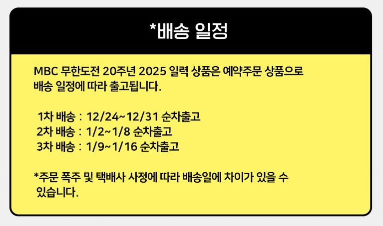 무한도전 20주년 2025 일력 구성 (출처 : 교보문고)