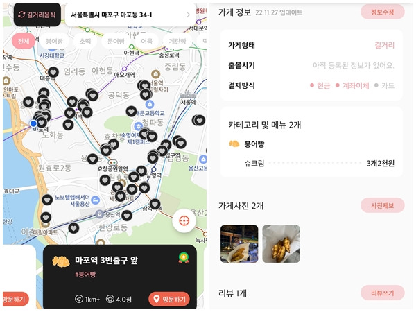 - 후기 작성: 방문한 붕어빵 가게에 대한 후기를 남겨 다른 이용자들에게 도움이 되는 정보를 제공하세요.