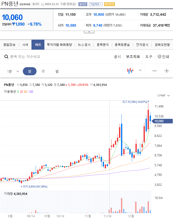 • PN풍년: 김동연 지사 관련주로 분류되며 주가 상승을 보였습니다.
