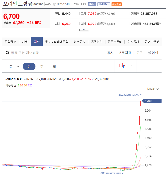 • 오리엔트정공: 이재명 대표가 과거 근무한 이력이 있는 오리엔트시계공장의 계열사로, 대표적인 이재명 테마주로 평가받고 있습니다. 최근 주가가 상한가를 기록하며 큰 폭의 상승을 보였습니다.