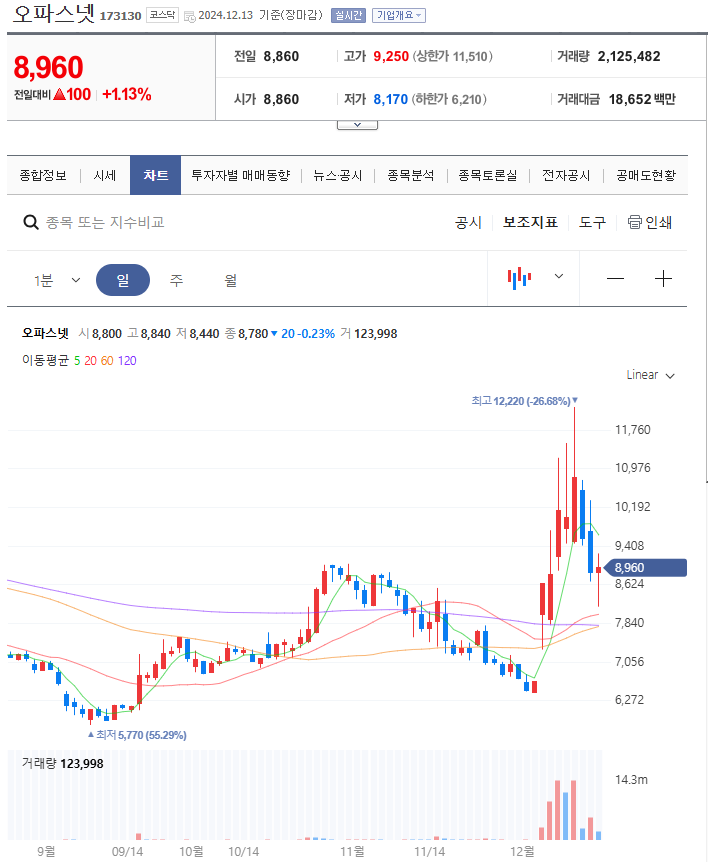 • 오파스넷: 한동훈 대표 관련주로 알려지며 주가 상승을 기록했습니다.