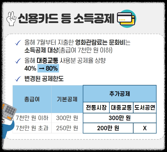 사례: G씨는 2023년 4월부터 12월까지 대중교통을 자주 이용하여 신용카드로 결제했습니다. 이 기간 동안 대중교통비에 대한 소득공제율이 80%로 상향되어, 더 많은 소득공제를 받을 수 있습니다.