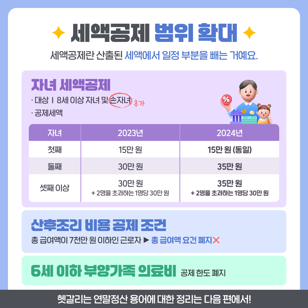 절세 방법: 자녀 수에 따른 세액공제 금액을 정확히 확인하고, 연말정산 시 이를 반영하여 공제를 받으세요.